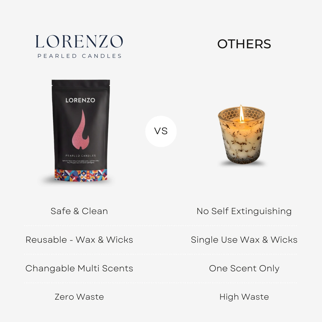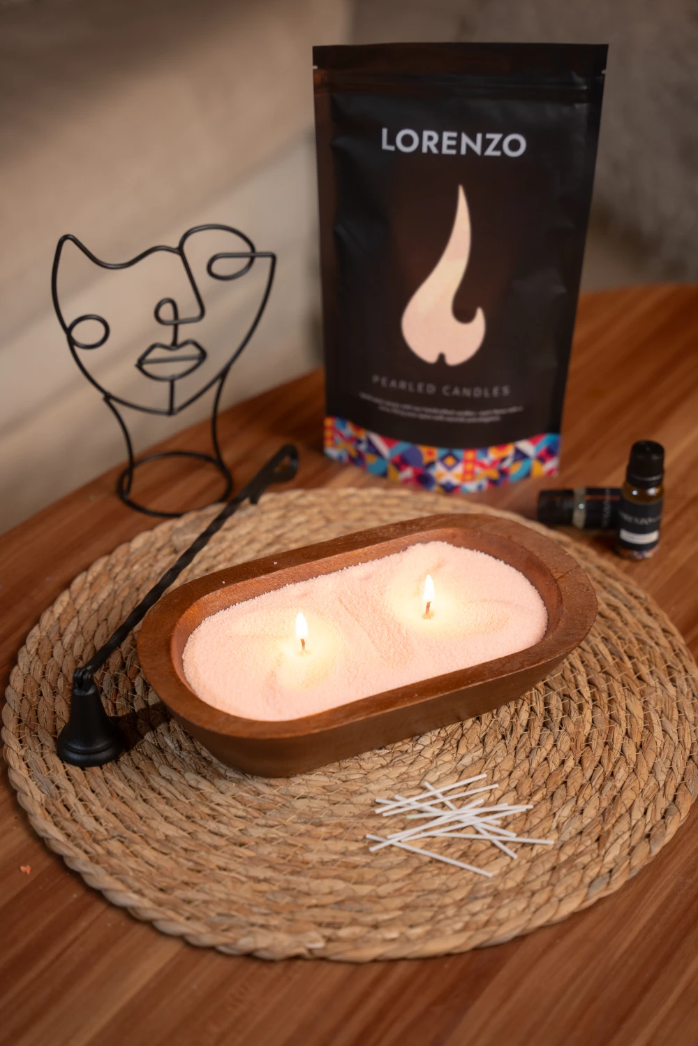 One 1kg pouch bag gives you the equivalent of 10 standard 200g candles — over 200 hours of burn time. With unlimited creations: mix colours, reuse the pearls, and style it in any container with décor whenever you want.